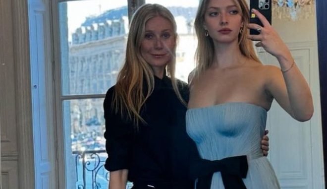 Епл одягла ту ж саму елегантну чорну сукню Calvin Klein, яку Пелтроу вперше носила майже 30 років тому на прем’єрі фільму «Емма» у липні 1996 року. Як і її мати в 90-х, Еппл обрала мінімалістичний образ, зробивши шикарну зачіску і вдягнувши сережки з діамантами. Сама Пелтроу вдягла на захід вишукану чорну сукню з оксамитовим ліфом, вирізом і великим бантом на плечі.