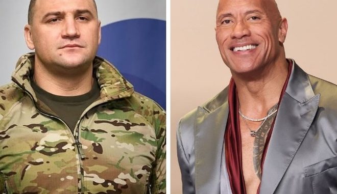 Голлівудський актор та зірка реслінгу Двейн «Скеля» Джонсон підтримав бійців 425-го окремого штурмового полку ЗСУ та їхнього легендарного командира, Героя України Юрія Гаркавого, який має аналогічний позивний — «Скеля».